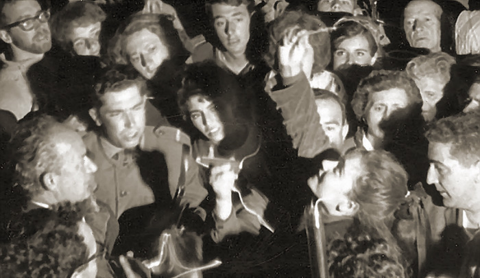 fiel Conchita im Cuadro in Ekstase, umringt von Reportern,