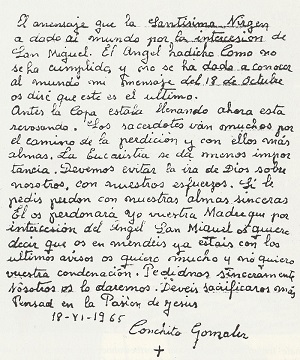bemerkt, daß Conchita die Botschaft mehrmals aufgeschrieben